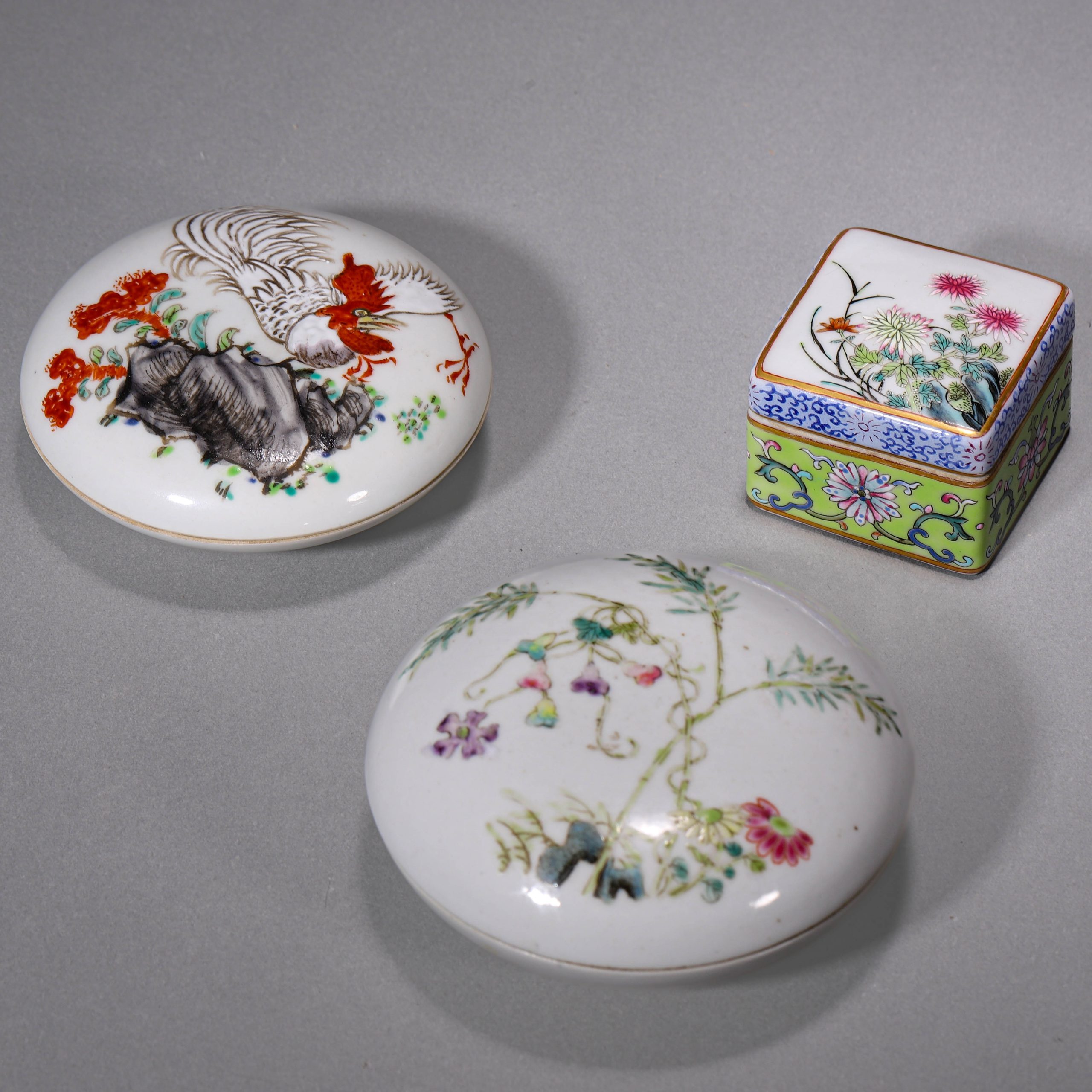 A Group of Three Various Colored Seal Paste Boxes and Rouge Boxes