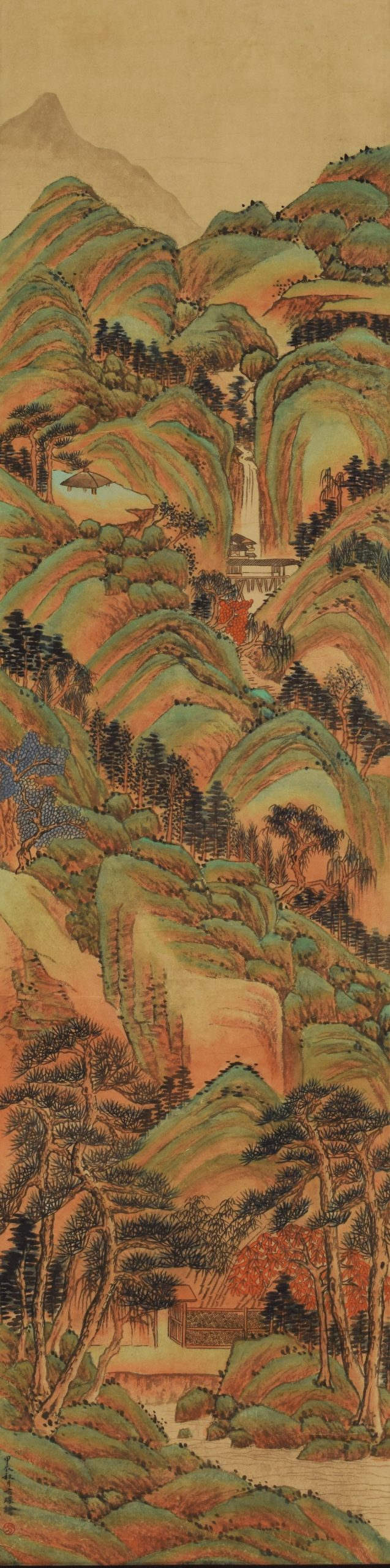 Est. 500~800FANG CONG, GREEN AND BLUE LANDSCAPE, INK AND COLOR ON PAPER50 × 12 5/8 in. (127 × 32 cm)