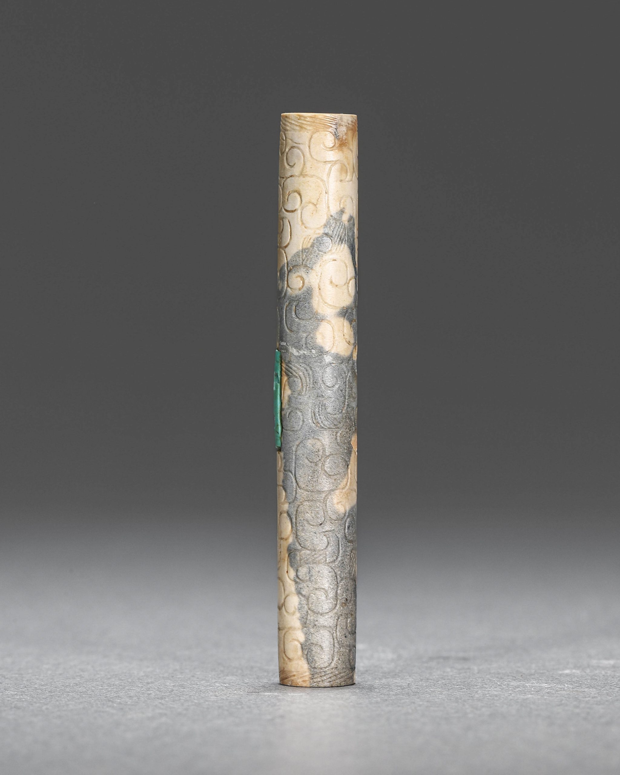A Chinese relief-engraved cloud and thunder pattern Warring States jade tube.