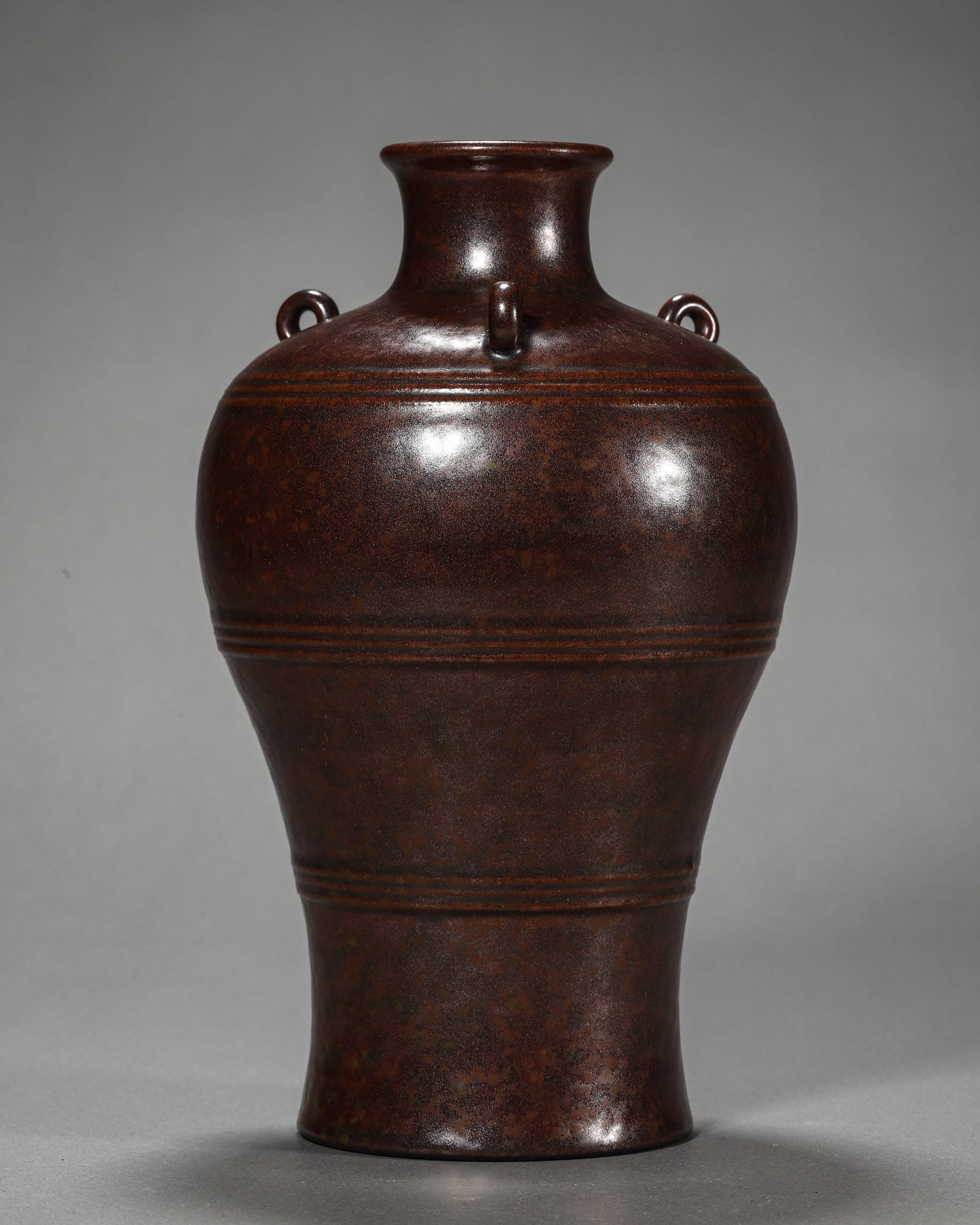 醬釉弦紋三系瓶
