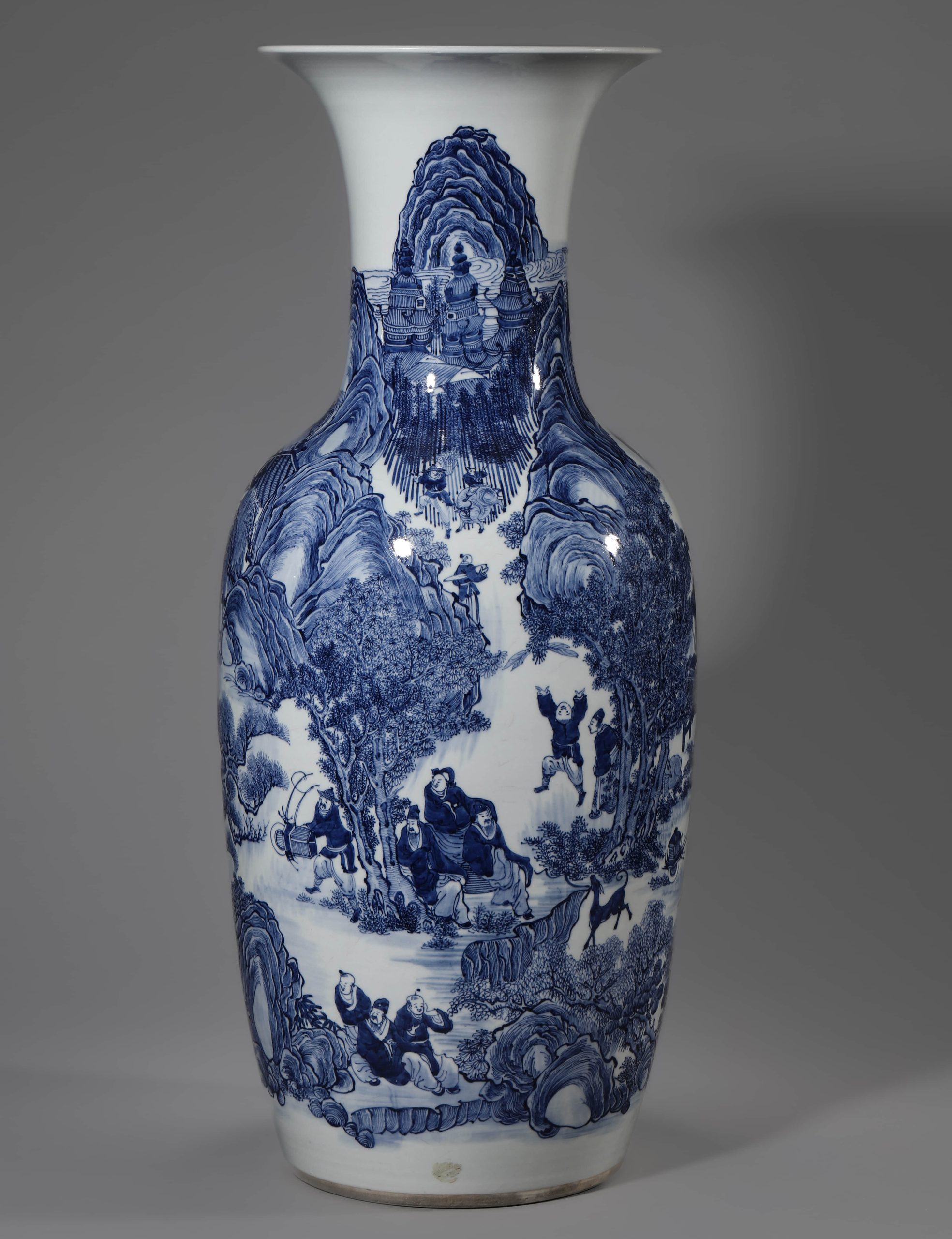 A CHINESE BLUE AND WHITE LARGE JAR WITH FIGURAL MOTIF, POSSIBLY QING DYNASTY.