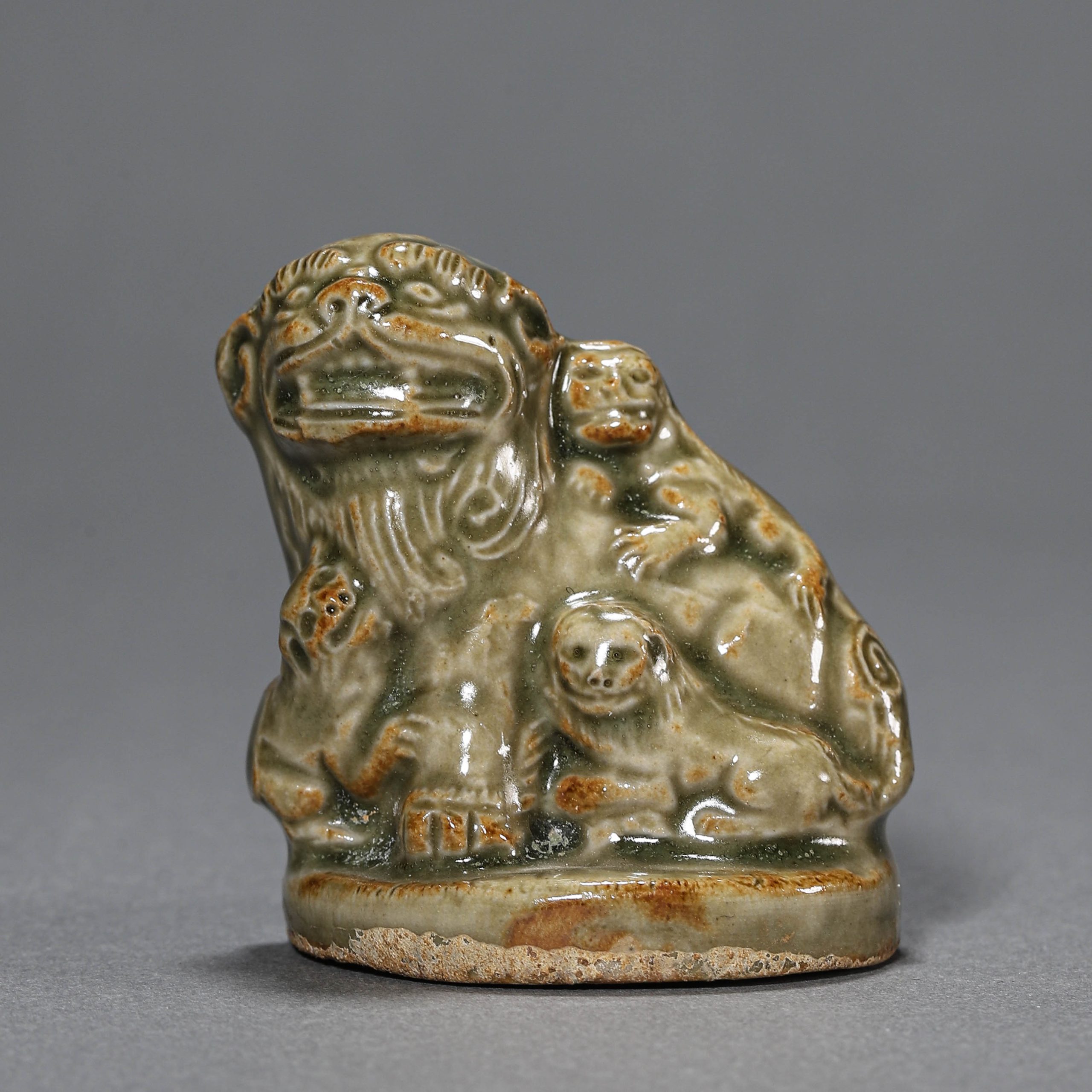 A CHINESE SONG DYNASTY CELADON LION FIGURE, POSSIBLY 10TH–13TH CENTURY.