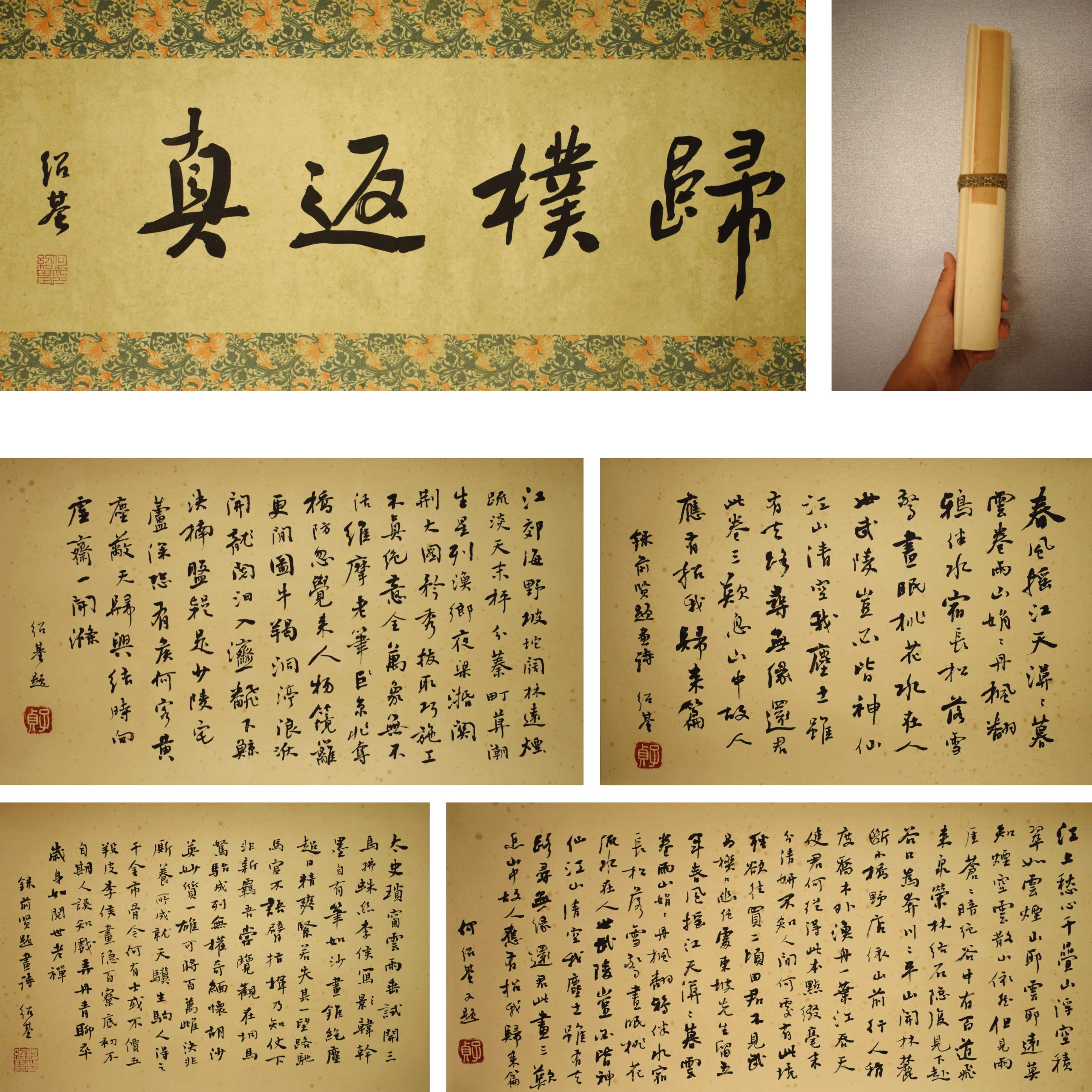 He Shaoji Calligraphy on Paper with Color Handscroll 120 1/8 x 13 3/8 in. (305cm x 34cm)