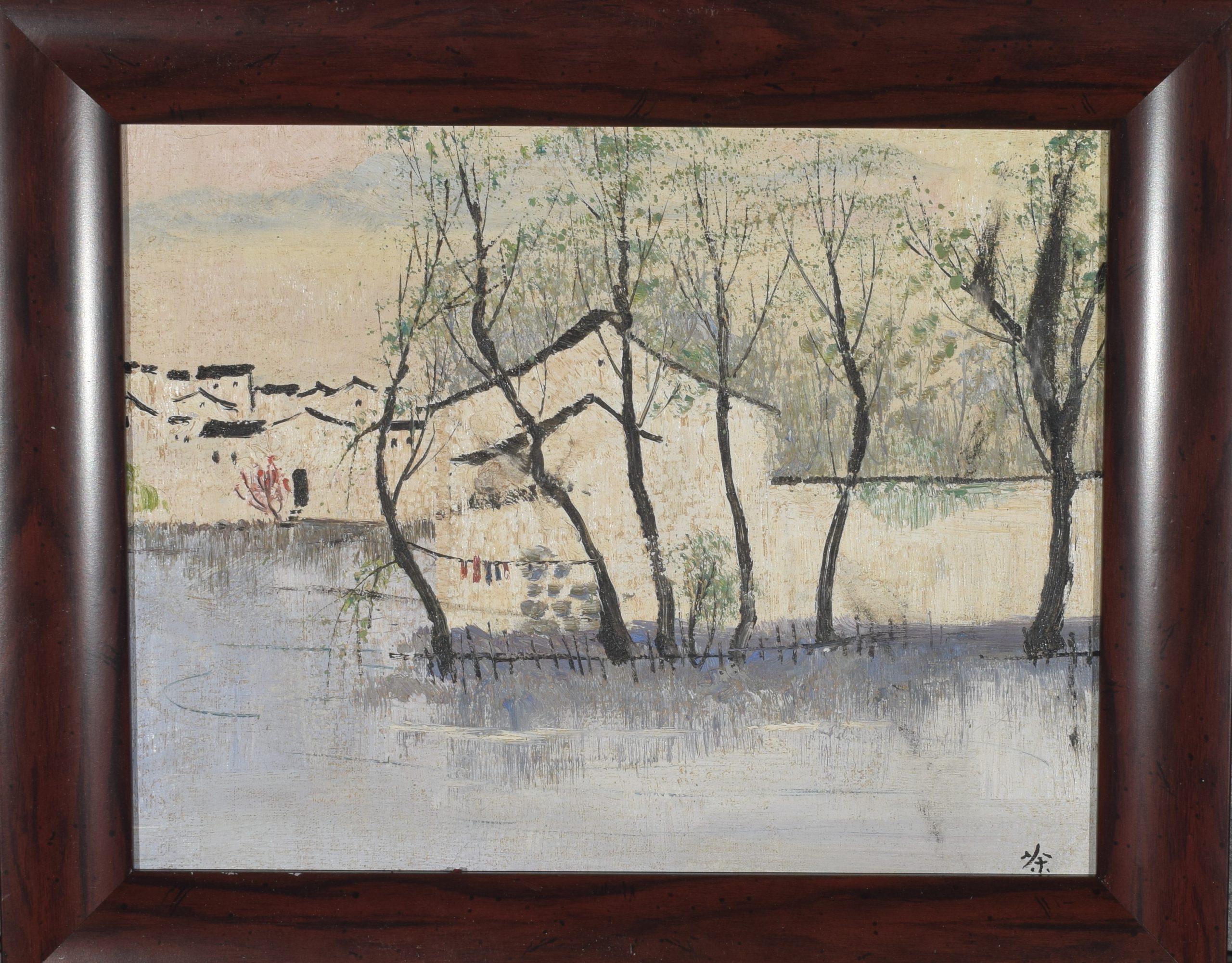 WU GUANZHONG (1919–2010) MARK, LANDSCAPE PAINTING, OIL ON CANVAS, POSSIBLY 20TH CENTURY.