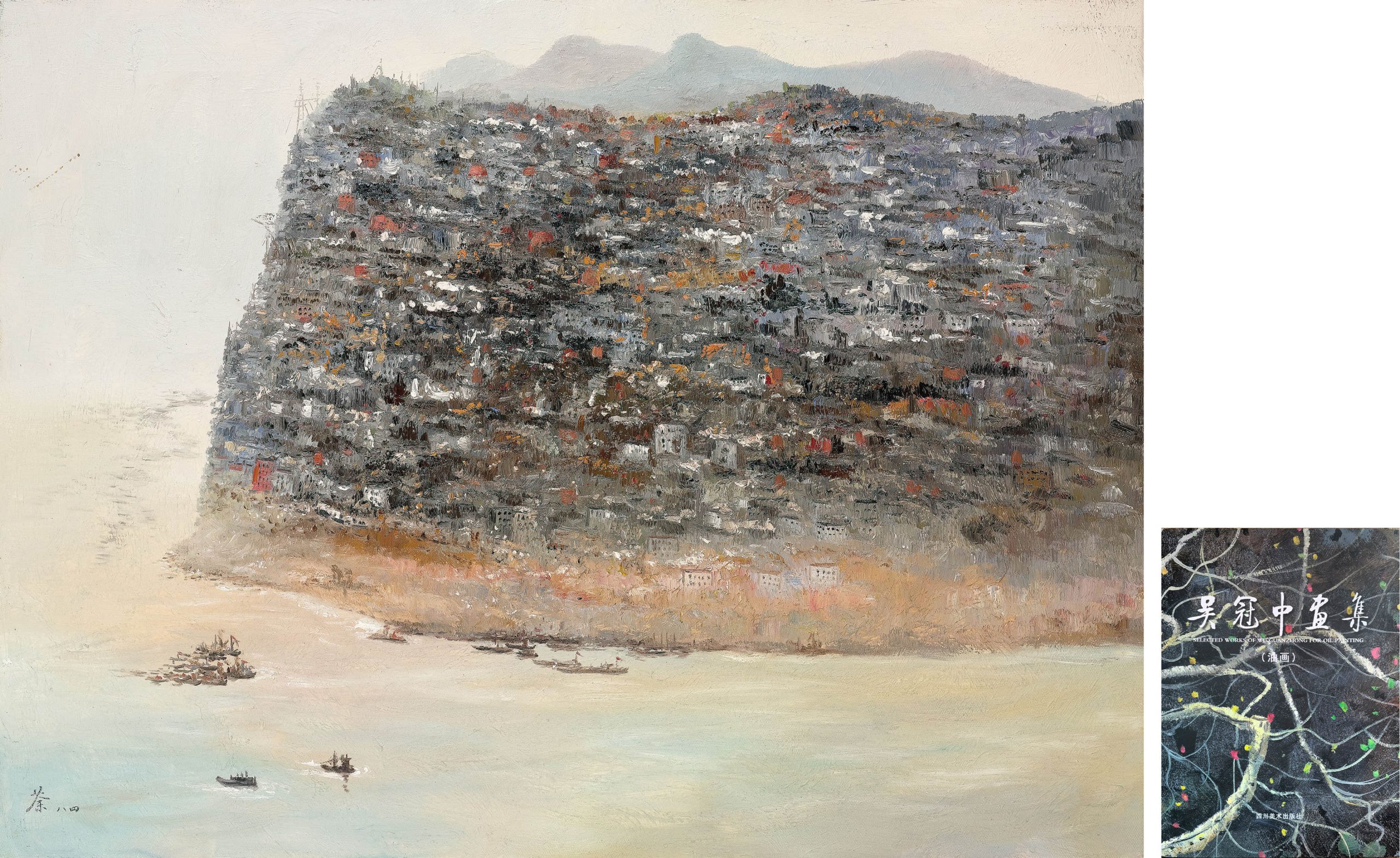WU GUANZHONG (1919–2010) MARK, “MOUNTAIN CITY ON THE YANGTZE RIVER,” OIL ON CANVAS, POSSIBLY 20TH CENTURY.