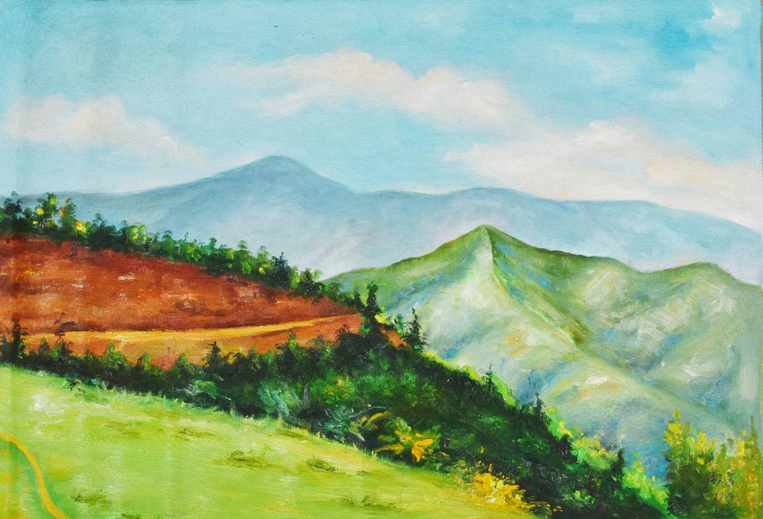 XIAO SHUFANG (1911–2005) MARK, “MOUNTAIN PEAK,” OIL ON CANVAS, POSSIBLY 20TH CENTURY.